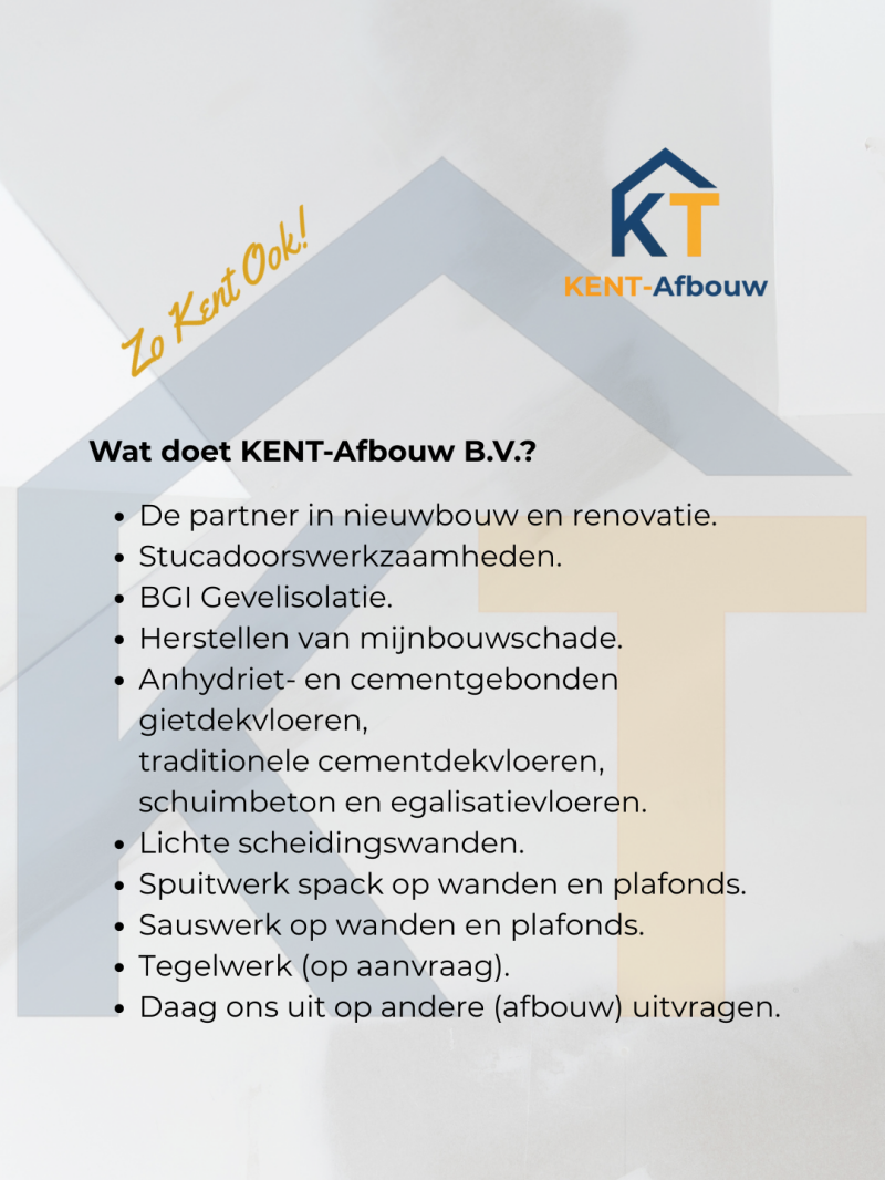 Welkom op de website van Kent-Afbouw BV. Aan deze site wordt gewerkt.